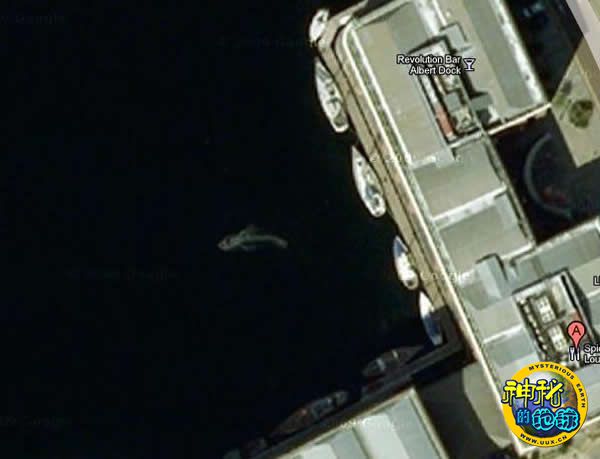 英国默西赛德郡利物浦有一名网友Simon Hoban在使用Google Earth的时候,发现有一只像是鲨鱼的不明物体出现在Albert码头,大小跟图片中停靠在旁边的船只差不多,甚至比其中几艘小船更大一些。