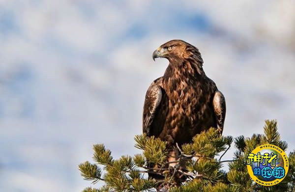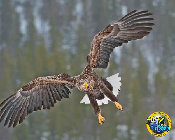 白尾雕闻味赶来,试图抢夺金雕的食物。