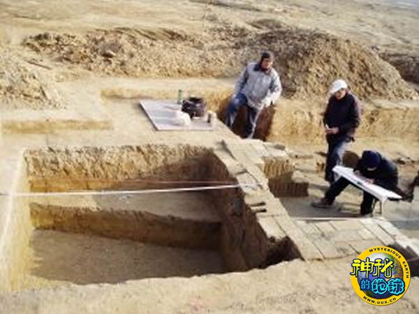 古墓葬最北侧,有一斜着通往墓室的通道。考古人员解释说,这就是墓道,但一般墓道是直着通往墓室,此处为何有很明显的斜度,还是一个谜。