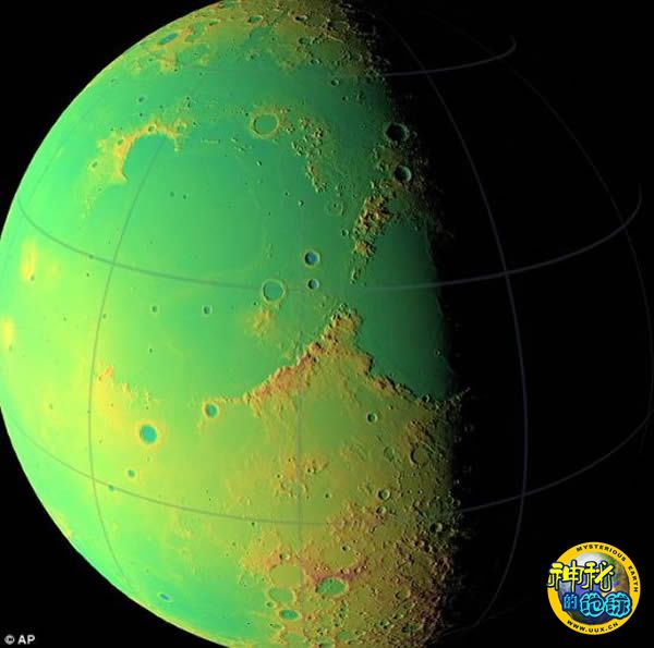 这是月球北半球的地形图。伪彩色图显示了月球地形高度:红色区域最高,蓝色区域最低。