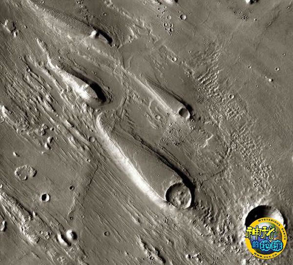 美国宇航局“火星奥德赛”探测器十年火星照片 来源: 神秘的地球 时间:2010年12月21日 11:47 4.泪滴状台地 泪滴状台地(图片提供:NASA/JPL-Caltech/ASU) 从这张由“火星奥德赛”探测器拍摄的照片可以看到,位于火星战神谷(Ares Vallis)地区附近的泪滴形状的台地向外延伸开来。科学家认为,凸起的岩石结构曾转变了火星表面的洪水流向。这个探测器长期围绕该行星运行,使科学家可以监控火星上每年的季节变化,其中包括冬季极区上空大气里的二氧化碳是如何凝结的。 上一页1234567下一页 上一篇 下一篇