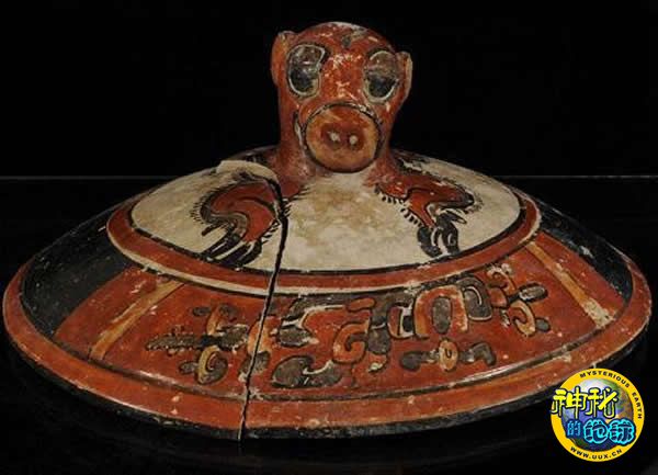 这些珍宝发现的遗址邻近一个早期典型的玛雅墓室,该玛雅墓室内有一个国王尸骸,这位国王被装扮成一个穿着仪式服装的舞者,系着的腰带上镶嵌着壳状“钟”和哺乳动物牙齿。国王尸体旁边有四具婴儿尸骨,两个年轻人的头骨,织物,雕刻物,以及一些陶器,其中一件玉米面碗陶器上描绘着一只野猪。