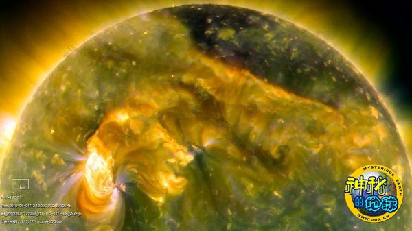 天文学家评估称目前可能是迄今为止观测到覆盖面最广的太阳黑子喷发,这些紫外线图像是由美国宇航局新型太阳观测卫星——太阳动态观测卫星拍摄的,自去年春季该卫星就已观测到太阳表面处于活跃状态。