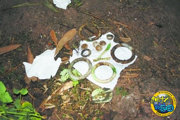 20日下午3时许,威远县界牌镇柏杨村村民李申云准备将当地一座老坟挖平,突然发现里面有一块石碑,碑记上书写着“光绪年卒,从自贡迁至威远……”的字样,而且可以看出坟墓的主人是一位太学生的夫人。 “ 李申云挖出了古墓的消息很快扩散,引来不少群众围观,公路都被阻断了。”柏杨村支书黄江河说。下午4点30分,县文管所所长赵佐良带领3名考古专家赶到现场。此时,坟墓已被破坏,棺木已被抬出坟墓。下午5点,专家将棺木打开,发现里面有四个玉镯、两枚戒指、五个玉扣、一块腰牌、两枚发簪,除了戒指外,其余都是玉制品。