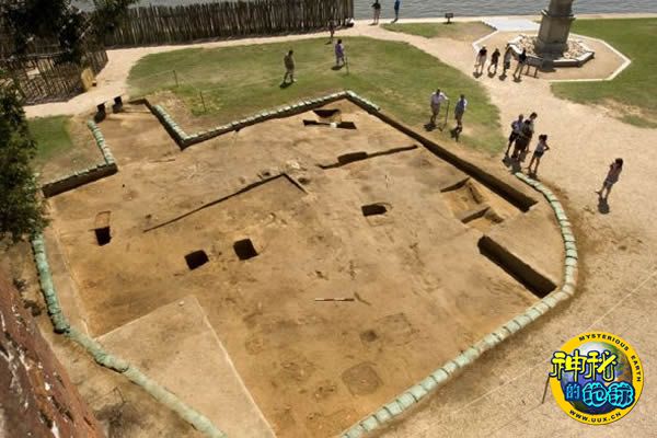 美国詹姆斯敦历史遗迹保护机构考古研究部门主任比尔·科尔索(Bill Kelso)带领的一个研究团队今年在寻找詹姆斯敦(英国在新大陆建立的第一个永久性殖民地)兵营时,意外地发现了北美大陆最早的新教徒教堂的残骸。他们发现了5个深坑,每个相隔12英尺(约合3.6米)。