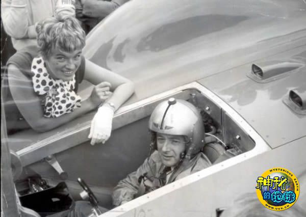 照片在苏塞克斯的古德伍德拍摄,坎贝尔的妻子托妮娅·伯恩趴在“蓝鸟”上与坐在狭小驾驶仓内的丈夫交谈。这是“蓝鸟”第一次在公众面前亮相。