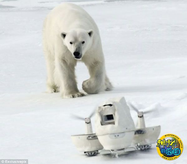 获奖导演约翰·唐纳最近把他的遥控间谍相机装扮成一个大雪球,用来追踪一只北极熊母亲带着它的小幼仔穿过挪威斯瓦尔巴特群岛的海冰,寻找海豹的过程。但没想到的是,这种伪装并没能骗过附近的一只成年雄性北极熊的眼睛。它快速追上移动照相机,用大而有力的爪子对眼前的“雪球”进行一番摸索,让唐纳和他的制片人拍了一些特写后,很快把相机砸得粉碎。