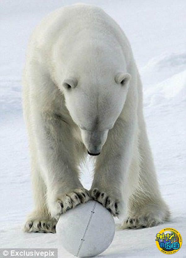 北极熊发现雪球相机