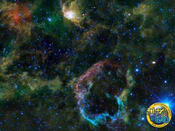 NASA广域红外勘测器发布1周年星云图像 来源: 神秘的地球 时间:2010年12月29日 12:18 水母星云 图片显示的是是“IC 443”星云,又被称为水母星云,距离地球5000光年,位于双子星座之中。这种水母外形的星云环绕着一颗超大质量恒星的残骸,该恒星大约在5000-10000年前爆炸。 天文学家称,这颗超大质量超新星爆炸喷射冲击波加热周围的气体和灰尘,从而形成这种壳状星云结构。水母星云可呈现出不同红外波长,这是由于冲击波能量密度不同,以及本质差异宇宙物质喷射光线形成的。 上一页1234下一页 上一篇 下一篇