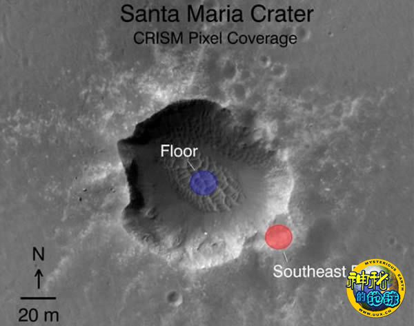而圣玛利亚陨石坑还有另外一个与众不同的地方,那就是它似乎显得特别“年轻”,其形成年代距今可能仅有数百万年。在地质学意义上看,这是一个非常近的时间。因此其暴露出的岩石表面应当尚未受到太严重的风化剥蚀。