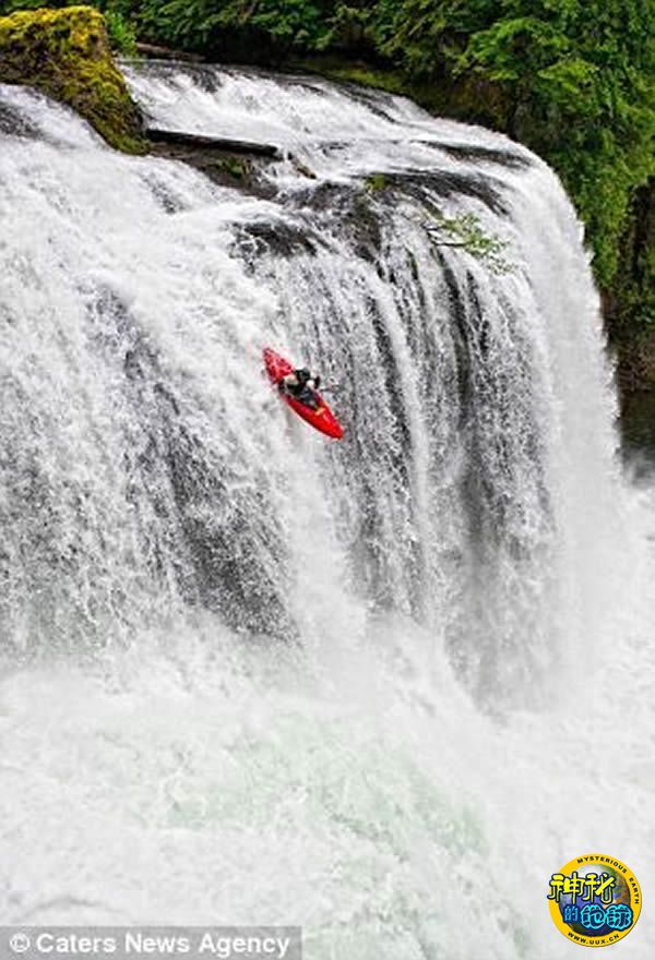 卢卡斯·吉尔曼也给其他极限皮划艇手拍照,例如派特·凯勒从华盛顿州刘易斯上瀑布俯冲而下