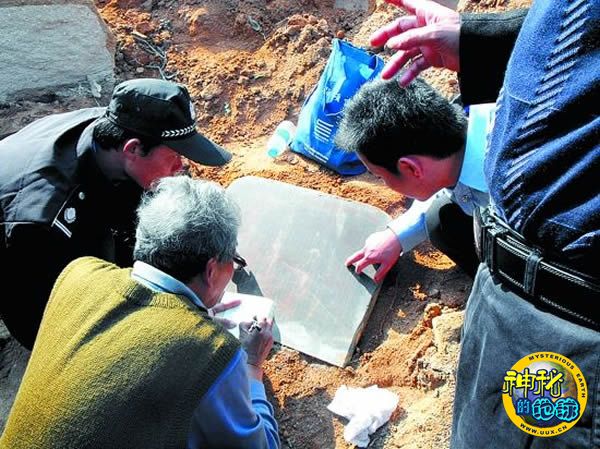 挖掘机师傅小洪告诉记者,当时他用挖掘机挖土时,突然挖到一个很硬的东西,刚开始以为是石头,再挖下去,发现是一块墓碑和一块墓志铭。工人们赶紧向有关部门报告。