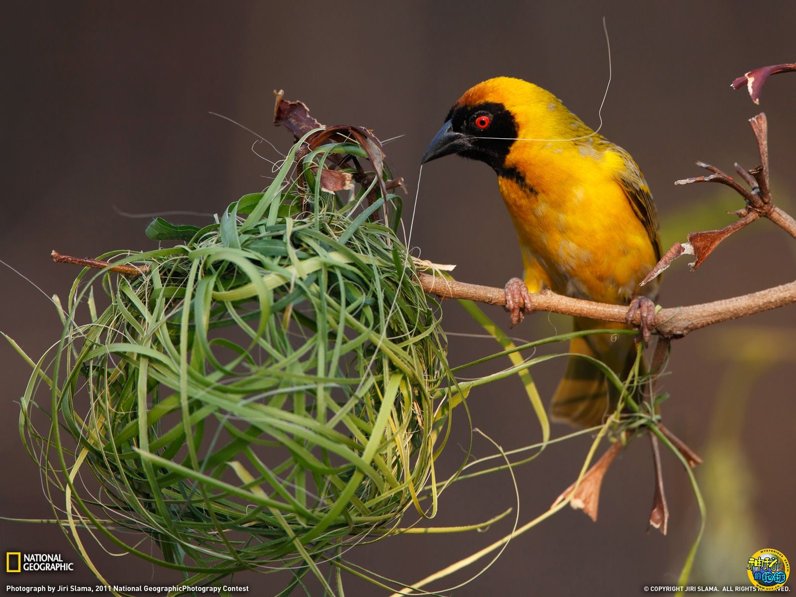 黑额织布鸟筑巢