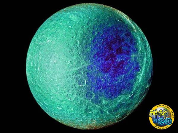 在人类的眼睛里,土卫五“利亚”的多冰表面呈单色,但在红外线、紫外线和绿色波长下,土卫五也会呈现出多彩的颜色,就如同我们在这幅图片中所看到的那样。这幅合成图片来自于美国宇航局的“卡西尼”号飞船,于12月20日公布。图片呈现的土卫五半球总是朝向土星,在绕土星轨道运行过程中,土卫五可见盘左侧朝着同样的方向。