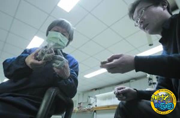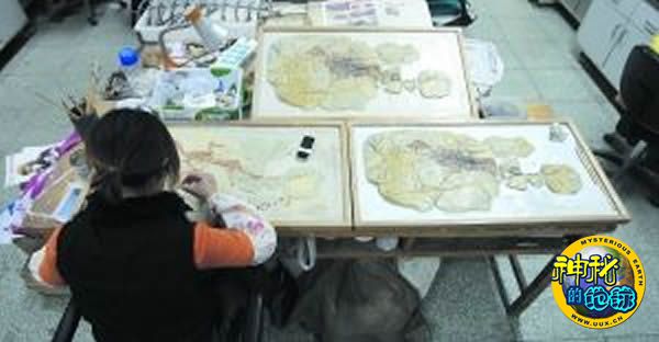 今年已经50多岁的王师傅在这群人中特别抢眼,他工作时总是戴着耳机。“耳边总有嗡嗡声,戴耳机也是对自己的一种保护。”王师傅笑呵呵地说。之前他在所里做司机,总是开车拉着科研人员在全国各地采集化石。听得多了,看得多了,王师傅自己也想亲手触摸触摸,就申请到了这个修复室。“心细”、“胆大”两个词是王师傅对这个工作特点的总结,“心细是显而易见的,胆大也很重要。”王师傅说,“当你手里摆弄的是从几百万年或者几亿年前来到现代的东西,就会很紧张,但是要憋着气,手也不能抖。”