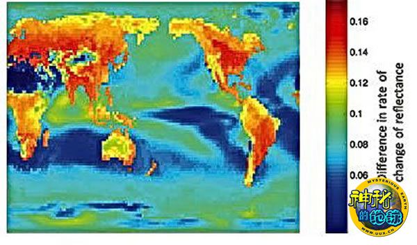 地球上的植物及某些微生物将照射在其表面的近红外线光反射回来,其反射变化率不同