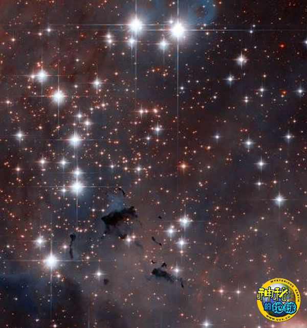 哈勃望远镜拍摄到著名的鹰状星云的“恒星发电站”,这个恒星聚集区叫做“NGC 6611”,是形成于550万年前的一个疏散恒星团。它距离地球6500光年,是一个非常年轻的恒星团,其中包含着大量炽热的蓝色恒星,它们释放出紫外线照亮了鹰状星云的周边区域。
