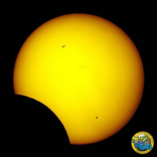 摄影师拍到日偏食期间国际空间站穿过太阳(左上小阴影即为国际空间站)