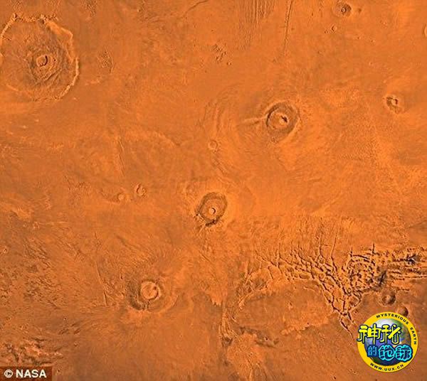 他们中有一部分专家认为火星表面那一长串笔直的火山锥就是板块活动的表现。其中最明显的一处就是位于奥林匹斯山附近的三座巨型火山,它们一起构成了火星塔尔西斯高原的主体。这也是尹安教授重点关注的区域。