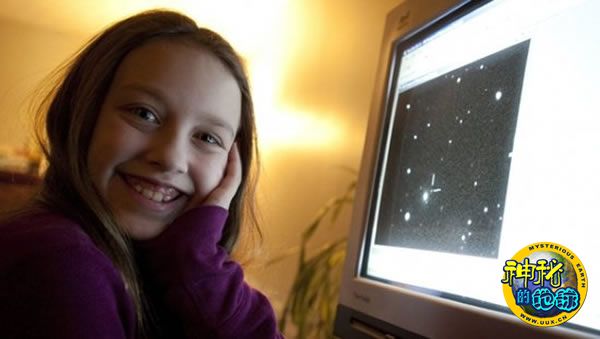 10岁的凯瑟琳·格雷坐在电脑前,她在屏幕中的星图上发现了一颗超新星