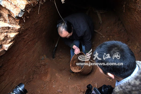 考古人员清理东汉古墓时挖出铁桶 来源: 神秘的地球 时间:2011年1月11日 10:26 考古人员清理东汉古墓时挖出铁桶 古墓挖掘现场 “快来看,挖到宝贝了。”昨日下午2时50分许,当考古人员在清理湾里东汉古墓墓室时,一个圆形物件引起了现场所有人的关注,然而,当考古队员小心翼翼取出该物件时,却发现是一只腐蚀得非常厉害的铁桶。南昌市博物馆赵德林副馆长遗憾地说,该古墓可能已经被盗,但破坏程度如何,整个墓室的结构怎么布局,都需要等墓室清理出来以后才能知晓。 江南都市报 许南平 邓旭敏 上一篇 下一篇 TAG: 东汉 古墓