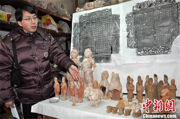 西安市文物保护考古所专家郭永淇在介绍出土的文物