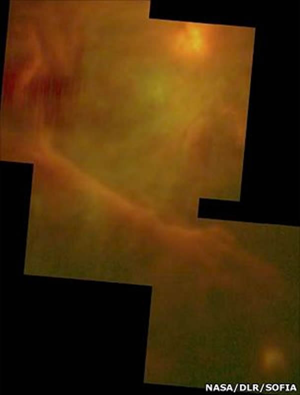 这些图片以空前的清晰度显示了猎户座星云形成恒星的区域。以后的研究将对这些恒星进行观察。研究人员在美国西雅图举行的美国天文学会年会上详细介绍了相关研究成果。同温层红外天文观测台是1995年退役的柯伊伯机载天文台(KAO)的接班人。由于各种原因该项目被一再推迟后,现在它在柯伊伯机载天文台发射升空的地方重新启动,天文学家借助它可以看到远红外线等波长范围的光。虽然太空望远镜也能观测到这种光谱范围的光,但是同温层红外天文观测台的适应能力更强。