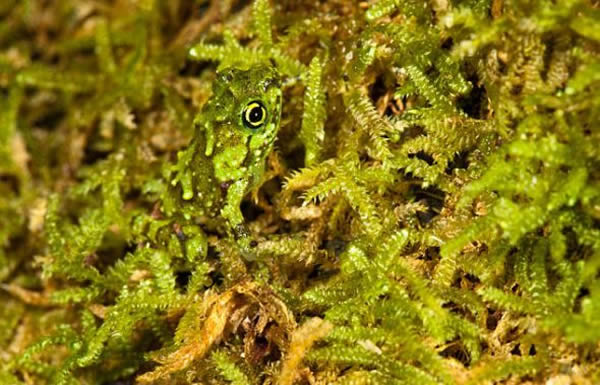 一只狭口蛙躲在马索亚拉半岛国家公园的青苔里