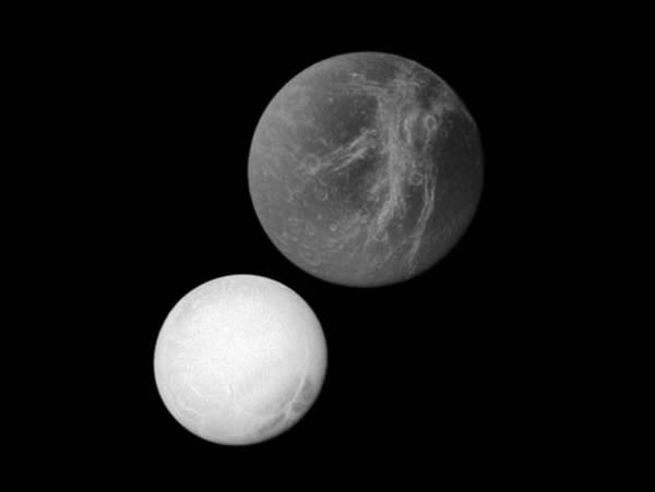 美国国家地理一周精彩太空图片:猎户座星云 来源: 神秘的地球 时间:2011年1月25日 11:10 6.两颗土星卫星 两颗土星卫星(图片来源:NASA) 照片由美国宇航局的“卡西尼”号飞船12月拍摄,展现了土星的两颗卫星——土卫四“狄俄涅”和土卫二“恩克拉多斯”。右上方颜色暗淡的卫星便是土卫四,另一颗明亮的卫星则是多冰的土卫二。拍摄时,“卡西尼”号距土卫二更近,但从照片来看,与土卫四之间的距离更近,因为土卫二的体积只有土卫四的一半。当时,“卡西尼”号距土卫二31.7万公里(约合51万公里),距土卫四51.6万英里(约合83万公里)。 上一页1234567下一页 上一篇 下一篇