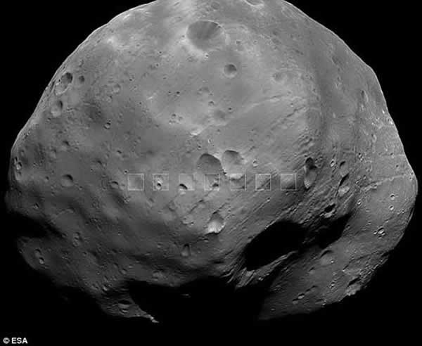 (神秘的地球www.uux.cn)据英国每日邮报报道,火星是人类最大的太空勘测目标,目前,欧洲宇航局“火星快车号”探测器亲密接触火星,1月9日在距离火卫一表面110公里处拍摄到该卫星的真实面目。
