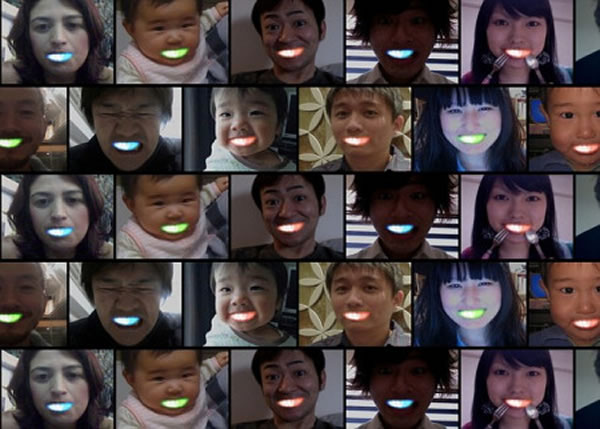 (神秘的地球www.uux.cn)日本发明了一种可发光的LED牙齿,可以像护齿一样佩戴在牙齿上。当佩戴者微笑时LED牙齿便会发光,且还能变色,甚至闪烁。