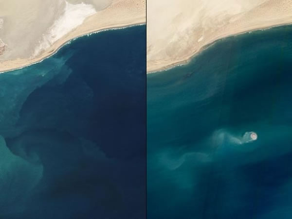 去年11月底,巴基斯坦的渔民们报告他们发现了这个位于阿拉伯海中的泥火山岛,美国宇航局的地球观测卫星-1号随后拍摄了该区域的照片,并确认了这一小岛的存在。但就在去年2月份,同一区域的图像上还见不到这个小岛。