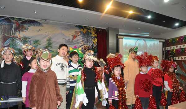 1亿2千万年前,古老又充满勃勃生机的热河地区曾经生活着大量的恐龙、哺乳动物和被子植物。衍蜓、小盗龙等恐龙时代的小精灵和中国翼龙分享着天空翱翔的乐趣。当然,这里也有着可怕的肉食恐龙:灵活的帝龙以及这个世界的霸主—中国暴龙,都想把那些小精灵变成它们口中的美餐。为你呈现这一切的,是21位北京最喜爱古生物的孩子。他们都是中国古动物馆小达尔文俱乐部的成员,年龄从6岁到12岁。1月23日,中国古动物馆多功能厅举行了“博物馆之夜——梦回白垩纪”恐龙音乐剧的首演。这场50分钟的演出是孩子们三个月的认真准备和排练的成果;演出使用的道具,无论是漂亮的恐龙羽毛,还是精致的恐龙模型,无论是充满想象力的辽宁古果,还是激烈喷发的火山,都是孩子们亲手制作的。而专业导演和舞美设计的美妙的音乐和剧情将给所有孩子们带来节日的快乐。