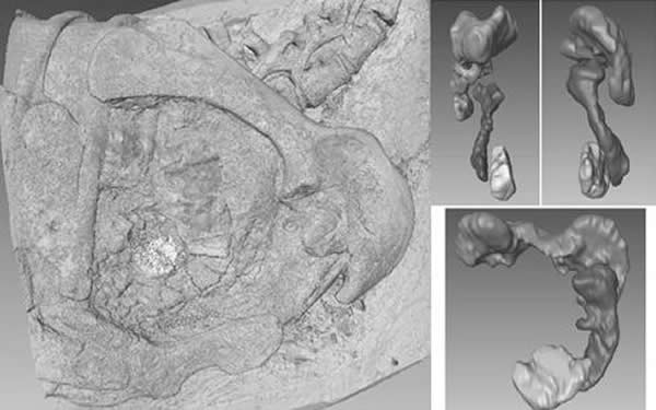被认为是恐龙“心脏”化石的标本及其扫描图像