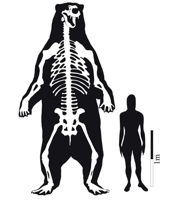 这一巨型化石是在阿根廷拉普拉塔市(La Plata City)中一个医院建筑工地中偶尔发现的。它属于南美短面熊(Arctotherium angustidens),是熊类家族中最古老和最庞大的成员。它生活在距今200万到50万年前,与它亲缘关系最近的是南美眼镜熊(Tremarctos ornatus)。