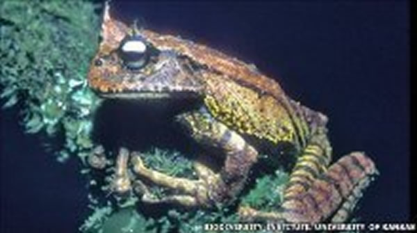 (神秘的地球www.uux.cn)纽约州立大学石溪分校的John J. Wiens教授最近发现,在演化历程中消失了几百万年的一些结构可以重新出现。Wiens对蛙下颌牙齿的演化史进行了研究,他综合了现代蛙类、化石蛙类以及DNA分析等数据,并利用了新的统计方法,他发现,蛙的下颌牙齿在2.3亿年前消失了,但是在2千万年前,下颌牙齿又重新出现在了一种蛙类的身上,它是Gastrotheca guentheri。Gastrotheca guentheri是一种生活在哥伦比亚和厄瓜多尔的有袋类树蛙,这种蛙类的雌性个体将卵背在背上的一个小袋里孵化。