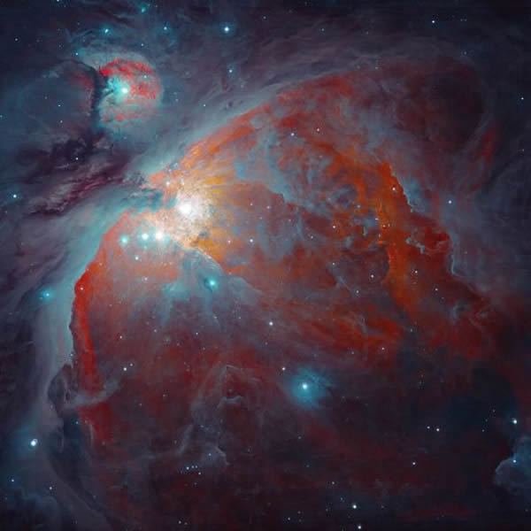 这幅类似水彩画的图片就是由俄罗斯天文摄影师伊格-查加林提交的参赛作品之一。原始图片是由位于智利的欧洲南方天文台拉息拉观测站2.2米天文望远镜上的宽视野成像仪于2005年1月拍摄。通过这张特写镜头,天文学家从猎户座星云中观测到一个恒星育儿所,那里的尘埃和气体正逐渐冷凝形成恒星。