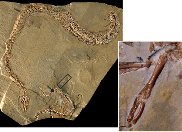 (神秘的地球www.uux.cn)蛇是从四足祖先进化而来的,长期以来,科学家一直在寻思它们是如何失去自己的腿的。对一具有9500万年历史的化石进行的一项新的计算机X射线断层(CT)扫描,揭示了基因是如何阻碍四肢发育的。利用一种新开发出的X射线技术——同步加速器辐射计算分层法,研究人员检测了一种远古海蛇(Eupodophis descouensi)退化了的后肢的细节。在被岩石遮盖的骨骼的扫描图像中,每一个像素仅仅有30微米宽。通过由一个薄层贴着一个薄层来实际重建一根0.8厘米长的肢骨,研究人员发现,与蛇的脊椎和及其大多数其他骨骼不同,此腿骨并不具有厚壁的骨干。研究人员在2月7日于《古脊椎动物学杂志》网络版上发表的一篇论文中指出,这是一条线索,表明蛇的四肢之所以发育不全,是因为它们的生长要么过于缓慢,要么比起其他骨骼而言生长时间太短。(神秘的地球www.uux.cn)