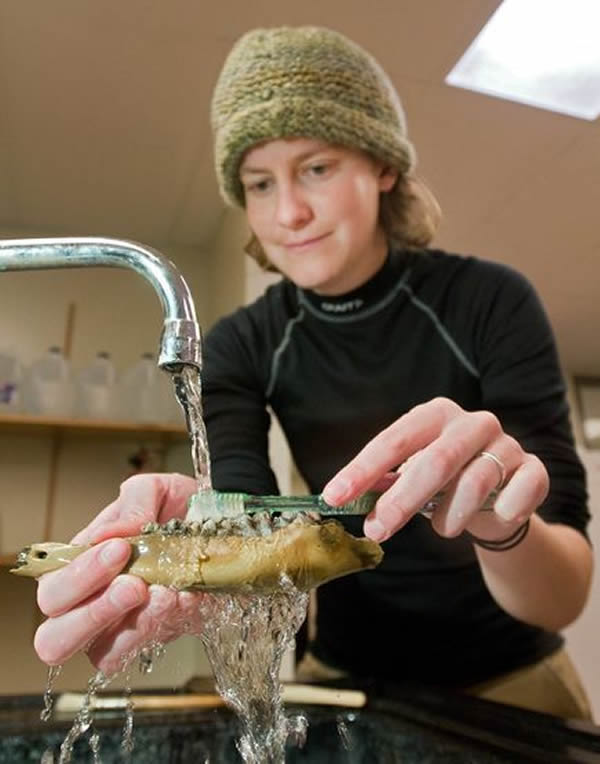 美国科罗拉多州的斯诺迈斯村附近出土大量冰河时代化石 来源: 神秘的地球 时间:2011年2月11日 17:05 4.清洗化石 清洗化石(图片提供:Rick Wicker, Denver Museum of Nature & Science) 博物馆收藏助理卡罗尔-路金正在清洗一头冰河时代的鹿的颌骨。这块化石也是在科罗拉多的这个地点发现的。除了发现了大型动物化石外,科学家还发现了冰河时代的种子、花粉、碳化的树叶以及蜗牛化石。 上一页1234567下一页 上一篇 下一篇