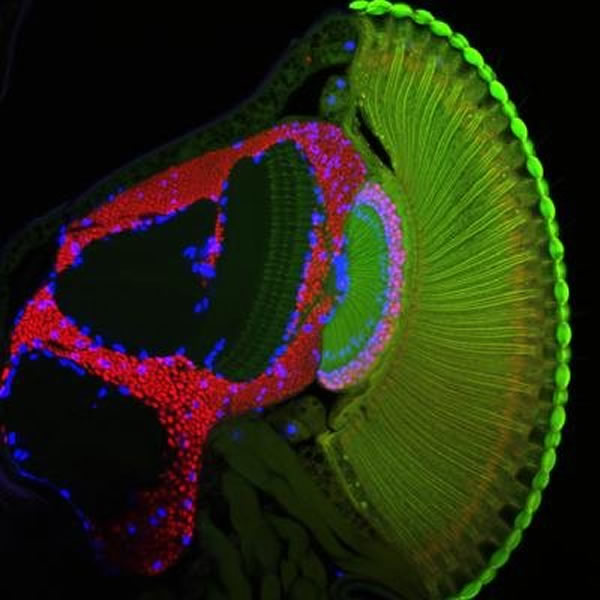 科学家在科学杂志《自然——神经科学》上公布了他们的研究成果:只有在两种基因共同作用下,果蝇的视觉神经才能够正确、恰当地生长。这两种基因控制着两种蛋白质的产生。这两种蛋白质是在轴突的尖端发现的,科学家认为它们从周围组织中收集所处环境的信息。它们的作用是使神经细胞能够在大脑中找到自己生长方向,识别自己的目标区域。研究显示,如果仅有一种基因活动或两种基因活动性失调,就会出现混乱的结果:轴突会在这一方向上的某处停止生长,最终无法到达自己的目标区域。