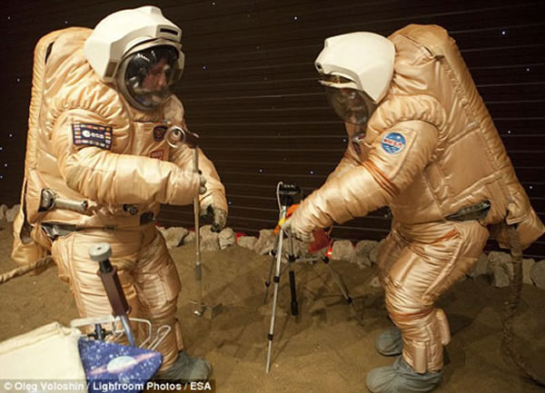 目前,他们模拟飞行抵达火星,同时,意大利宇航员迭戈-厄比纳(Diego Urbina)和俄罗斯宇航员亚历山大-斯莫列耶夫斯基(Alexander Smoleyevsky)于14日第一批模拟在火星表面行走。这是6位宇航员在257天模拟太空生活中迈出的一大步,同时也是攻克火星进程中的一小步,研究人员在开始漫长的“返回地球飞行”之前,用了两天时间研究火星。