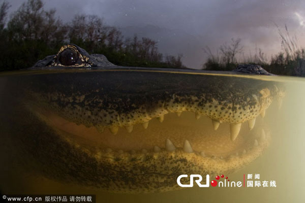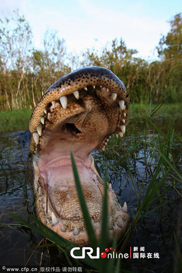 (神秘的地球www.uux.cn)52岁摄影师吉姆·阿贝内西在佛罗里达州沼泽地拍摄的短嘴鳄照片。为了近距离拍摄震撼的短嘴鳄照片,吉姆潜入短嘴鳄生活的湖中,将手臂伸出水中模仿它们的动作。幸运的是,短嘴鳄没有用锋利的牙齿袭击吉姆,吉姆获得了他需要的照片。(神秘的地球www.uux.cn)