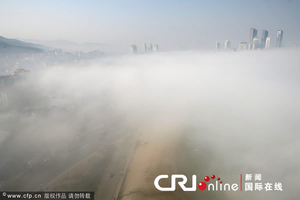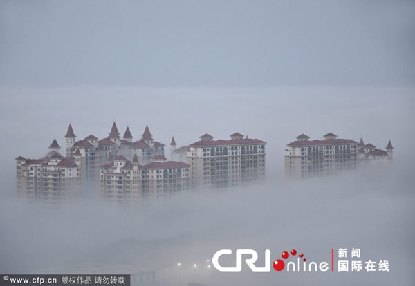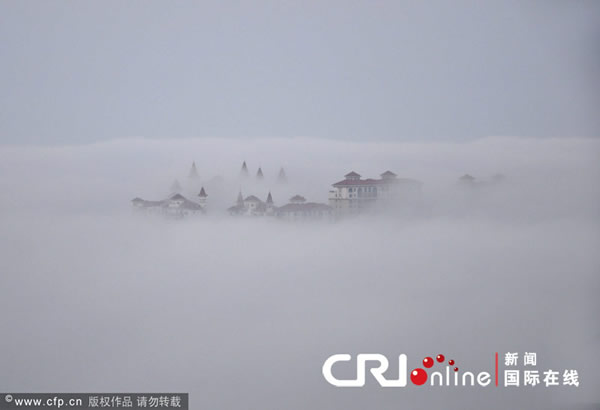 (神秘的地球www.uux.cn)2011年2月21日,山东烟台市区靠海边区域出现平流雾,建筑物被浓雾缠绕,宛如仙境,直到傍晚6点,海边大雾依然未散。据了解,平流雾是由暖空气流到移到较冷的陆地或水面时,下部冷却凝结形成,在适当的风向、风速下,平流雾会附在海面随风平流。(神秘的地球www.uux.cn)