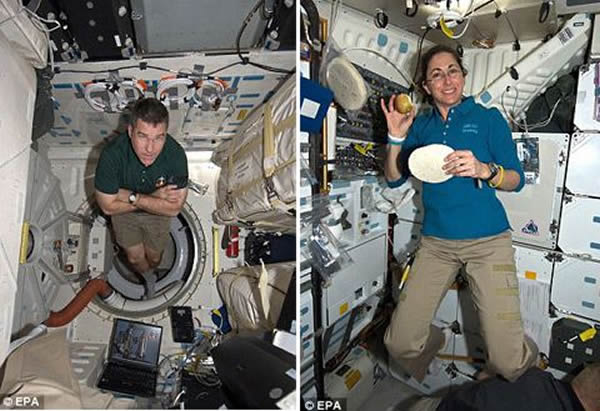 最后一次:宇航员史蒂夫•鲍文和妮可儿•斯德特呆在执行最后一次飞行任务的“发现”号上。重返地球后,该机将陈列在博物馆里