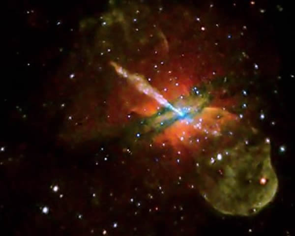 这幅照片由钱德拉X射线望远镜拍摄,展示了半人马座A星系内一个超大质量黑洞产生的影响。