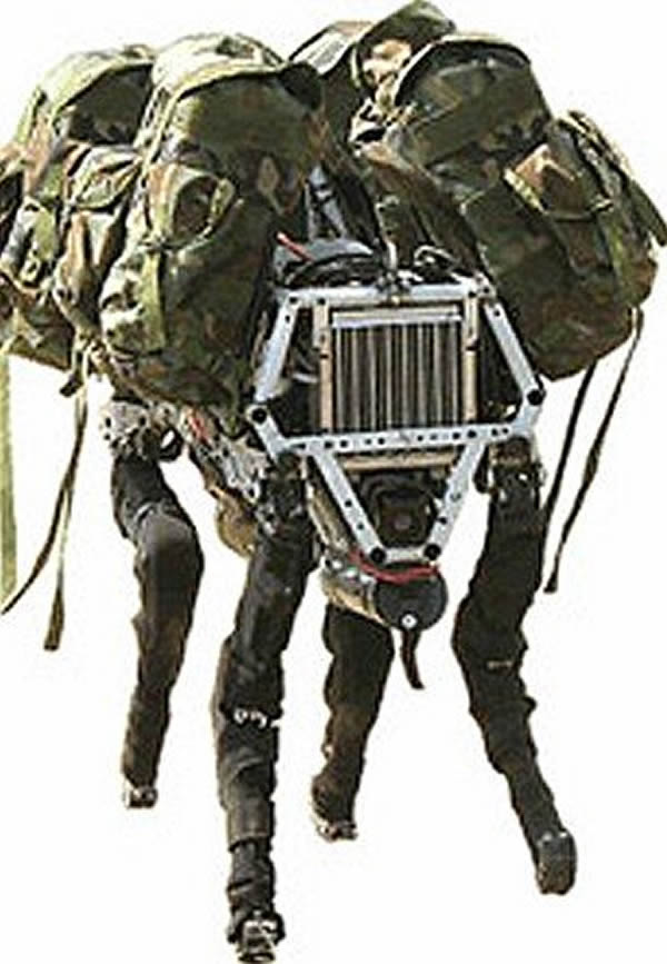 “大狗”机器人于2008年面世。在崎岖的山地上它可以帮助士兵搬运武器装备等。