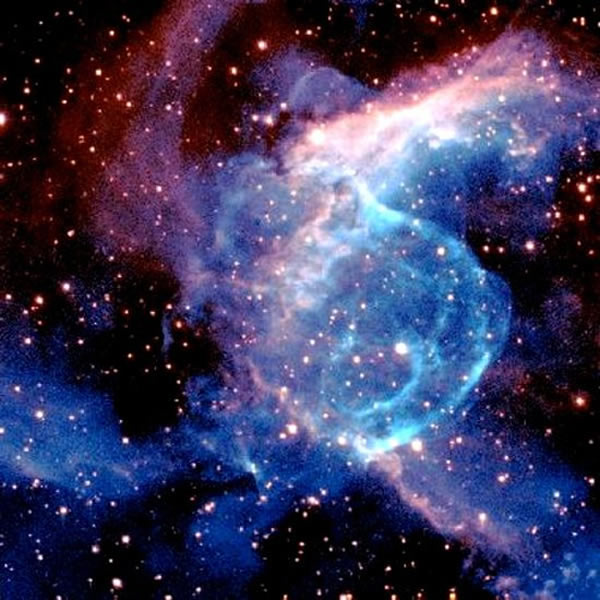 专家表示,主要的原因在于一颗巨大的沃尔夫-拉叶星,它处于泡泡的中心,这一点在图像中可以得到证实。这类恒星含有许多宇宙流星,这些流星不仅非常巨大而且亮度极高。沃尔夫-拉叶星(通常也被称WR恒星)是相对较老并用质量很大的天体。它们的质量约是太阳质量了20倍,或者更大,它们的主要特性是其质量以非常高的速率流失。