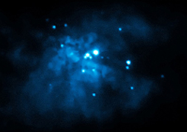 这张来自钱德拉X射线天文台的图片显示了年轻的M82星系中心的超亮X射线源,这些被认定为是中等大小的黑洞。