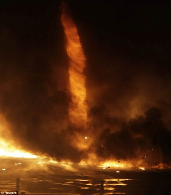 据悉,该厂房大约有400平方米被烧毁,其中包括一些用来加工建筑材料的原材料。火旋风只有在特定情况下才会出现,它常形成一个垂直空气柱,偶尔会同其他火焰分开。野火最易引发火旋风。它们通常高10到50米,直径几米,能持续几分钟。不过记录显示,也有高超过1公里的火旋风。有史以来最致命的火旋风发生在1923年的日本大关东(Kanto)地震期间,这个巨大的火球在15分钟内导致3.8万人丧生。(神秘的地球www.uux.cn)