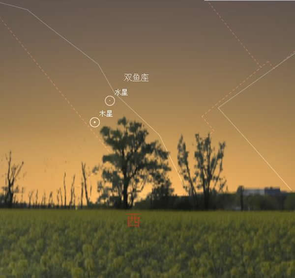 水星合木星在今年将发生两次,第一次发生在3月17日,第二次发生在5月11日。三月的这次水木相合,虽然距离水星东大距还有6天的时间,但水星日落时的地平高度已达15°以上,亮度达-0.8等,我们在暮色中找到它和-2.0等的木星应该不太困难。(神秘的地球www.uux.cn)